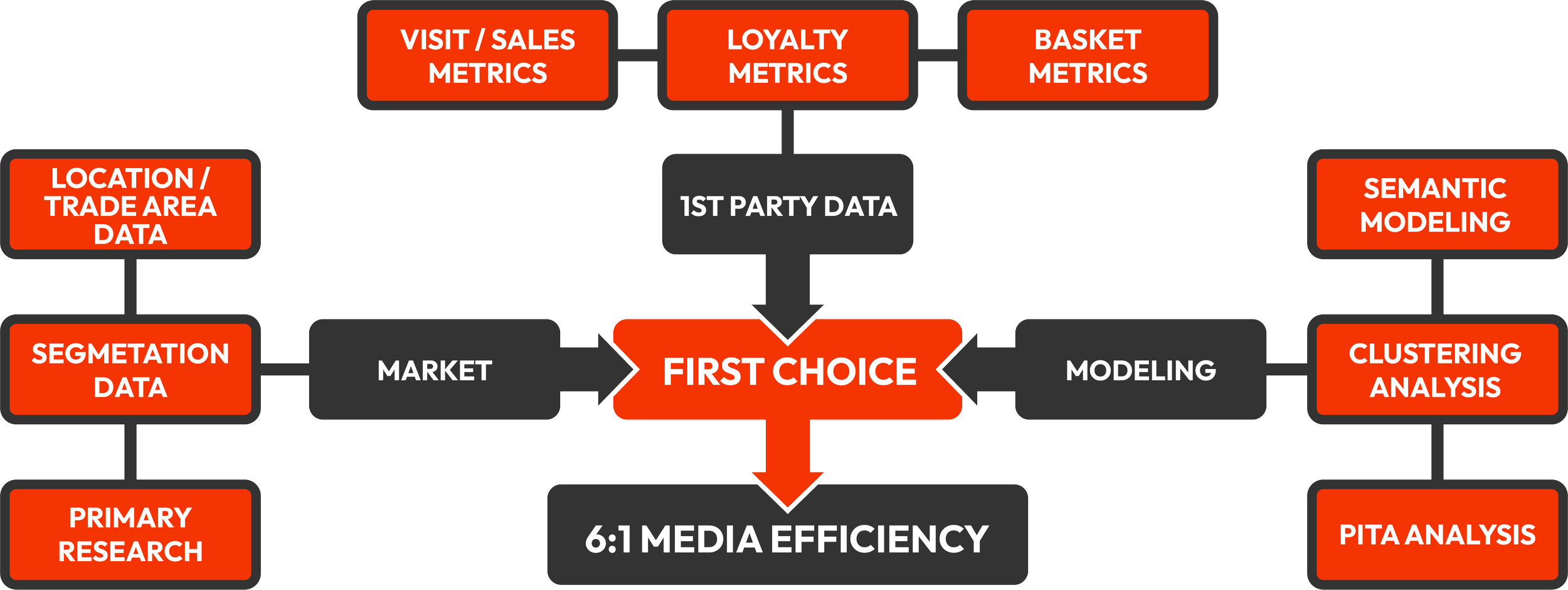 Surface’s First Choice framework turns information into actionable clarity; we help brands understand the real drivers of preference, connect these to next best dollar actions for the organization and then translate that into clear, marketing action.