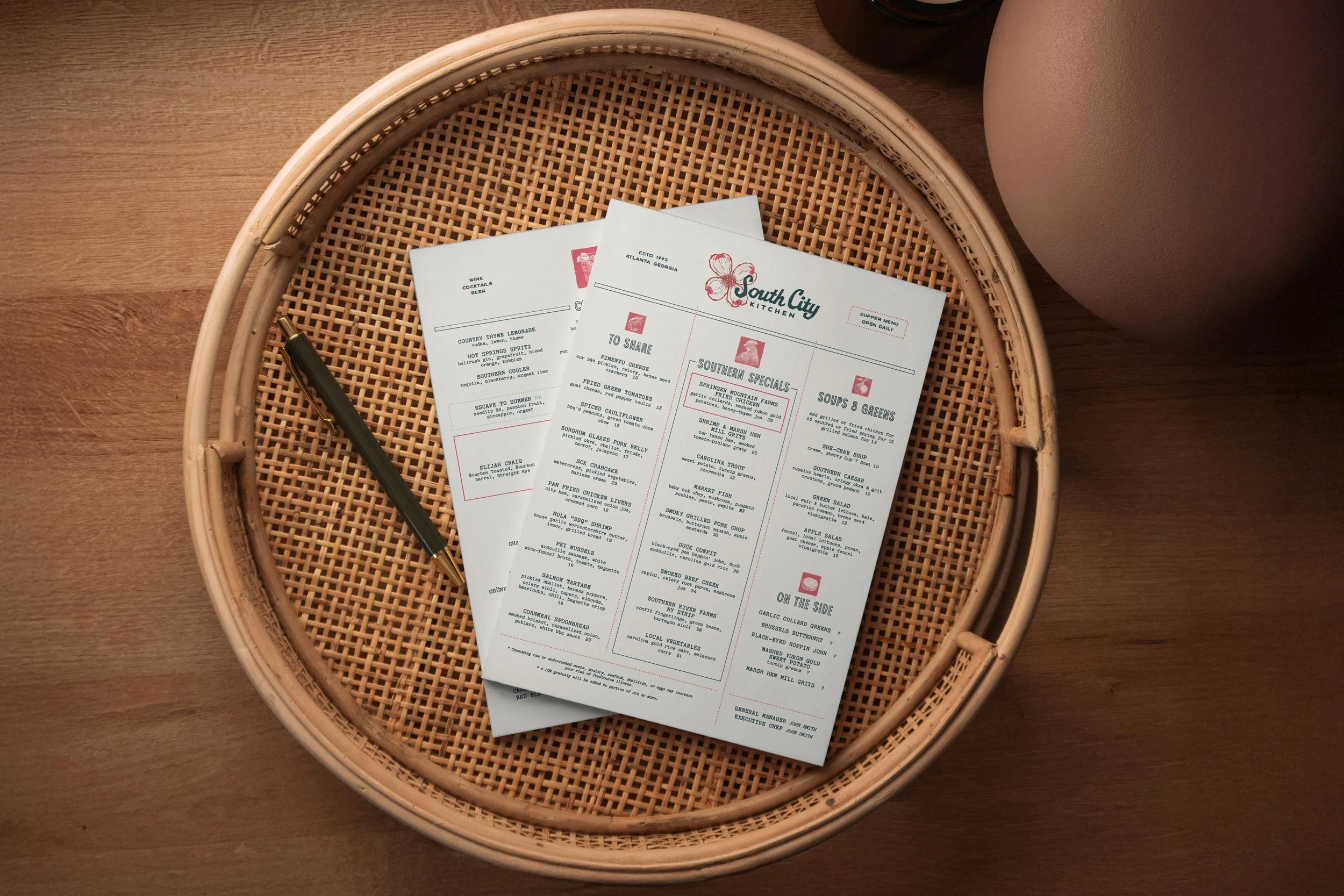 The SCK beverage program features a thoughtfully curated selection of craft cocktails, wines, beers, and whiskey, perfectly paired to complement our menu. With a blend of classic favorites and innovative creations, there’s something to delight every palate. We created beverage hero pieces to drive awareness and excitement. Non and low ABV options for a more inclusive experience. Whiskey flights and cocktail pairings with stories highlighting and educating our southern heritage.